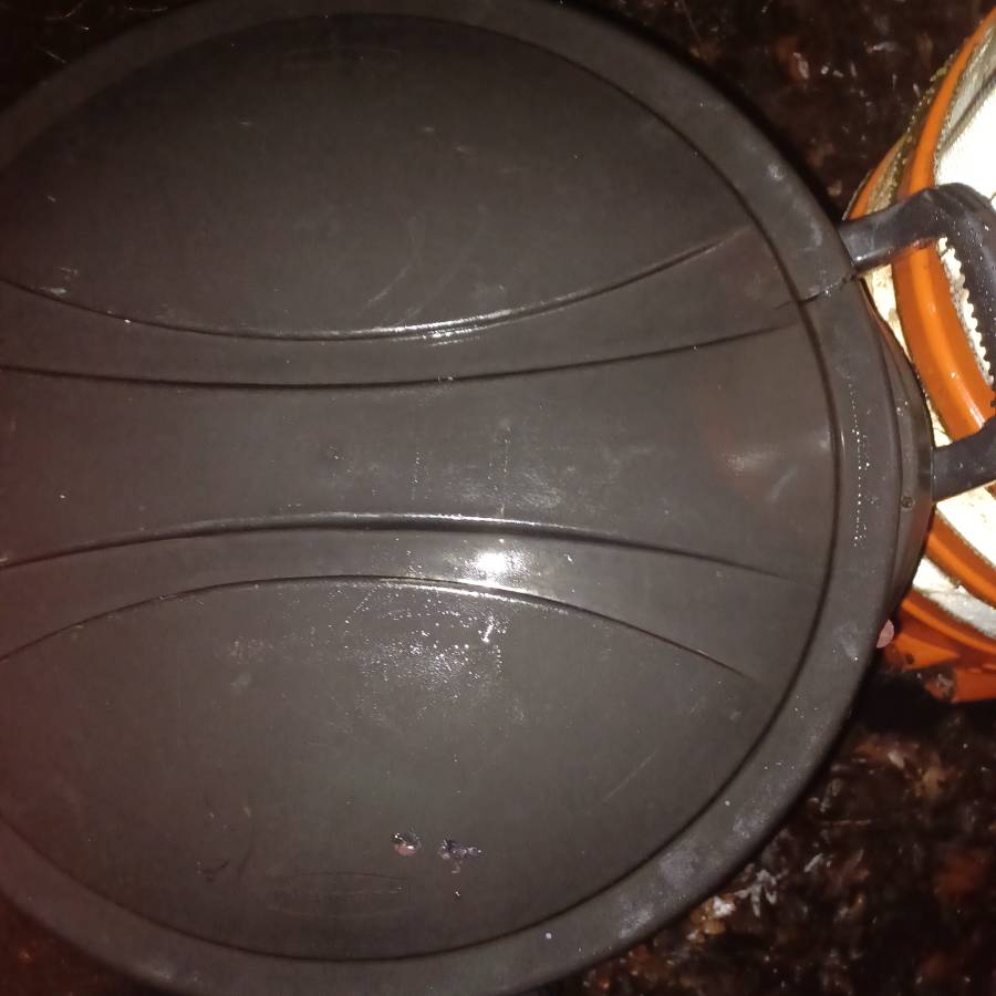 Good can with two wheels and lid. Lid has a split on the edge. Easy patch with duct tape. It stays on the can as is.