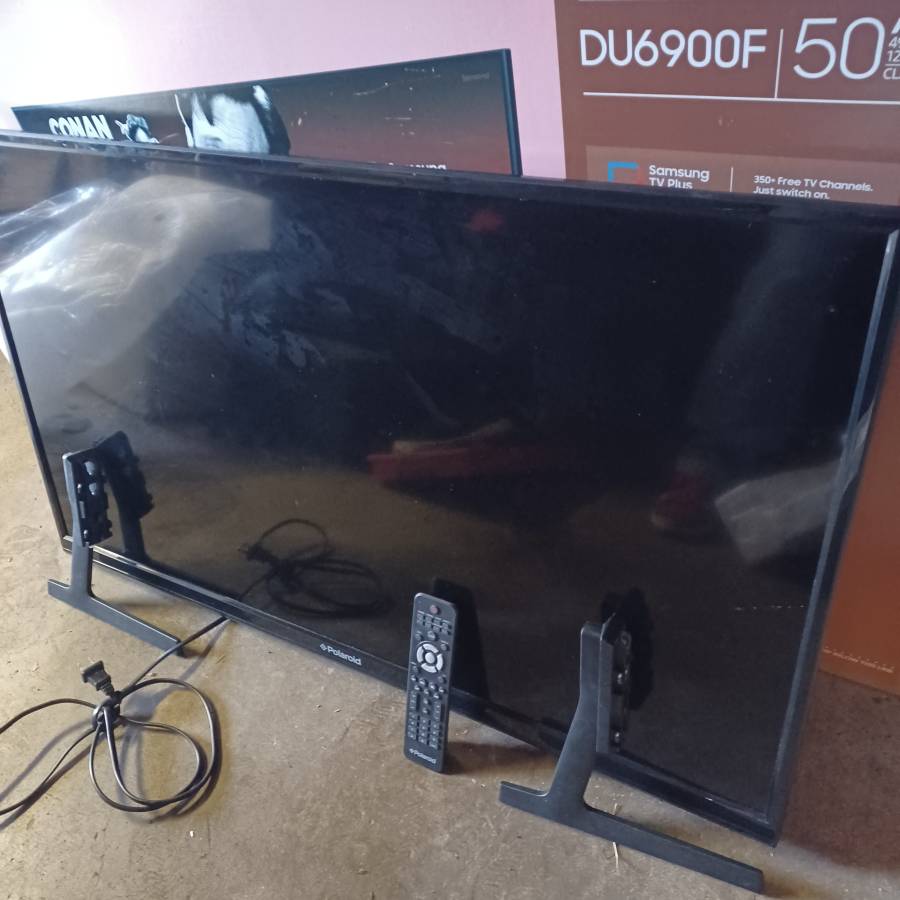 Polaroid 40″ Full HD LED monitor with legs and original remote. Adult-owned with zero kids or pets means CLEAN and never abused. No scratches whatsoever. Ideal for extra monitor for computer network or if you have a cable or satellite box for TV reception. There is no tuner built-in.
