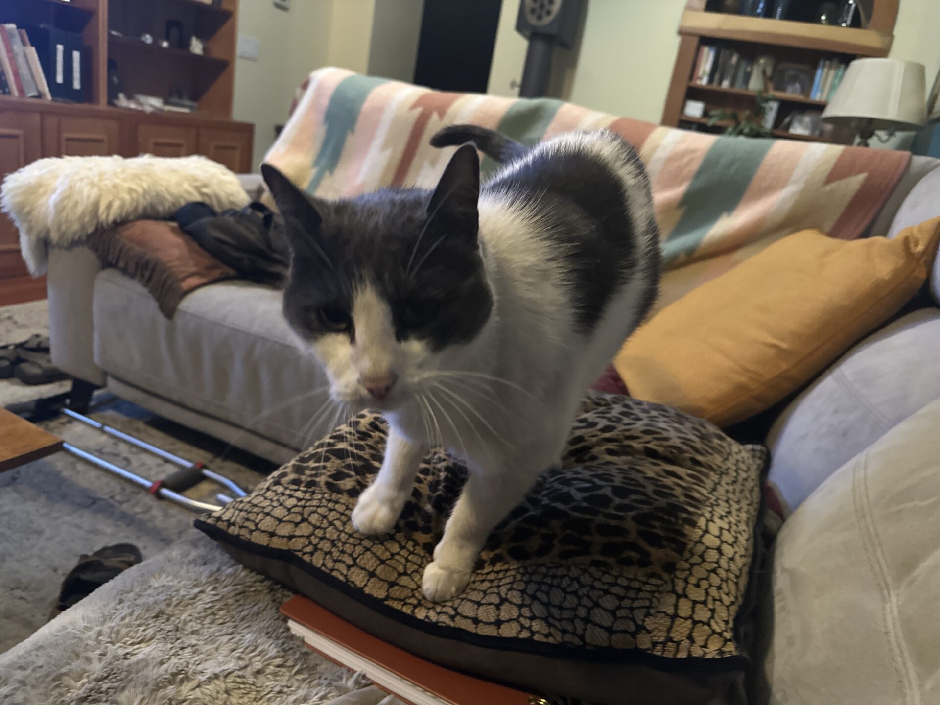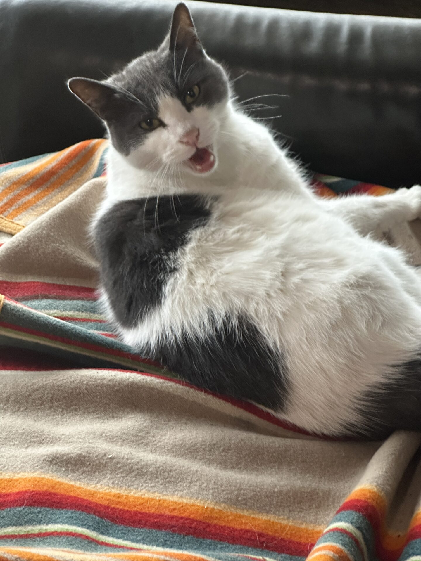 Neutered male, about 13 years old, very friendly and loving. Healthy. Has all shots. Ex-girlfriend moved out and “forgot” to take her cat. Cannot keep him; painful reminder of ex.