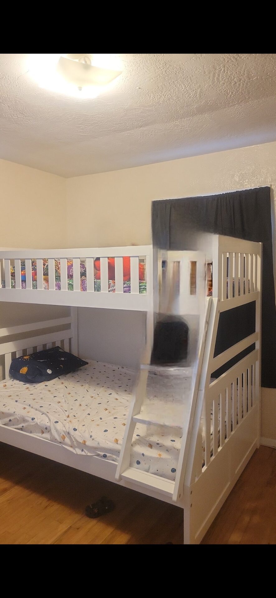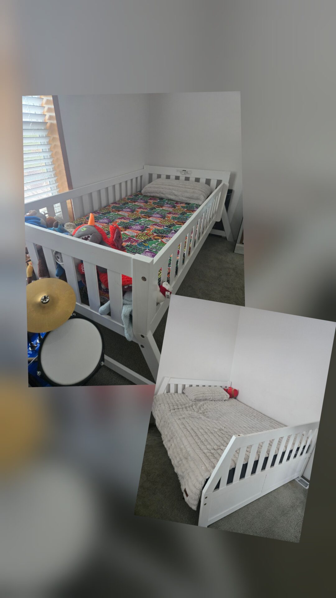 I am selling these two bunk beds. We purchased a new bed set and don’t need these anymore. We originally purchased the bunk beds and mattress for $1,000+. I am asking for $300.00, as the bed frame has scratches here and there. You can have them individually or 2-in-1.
