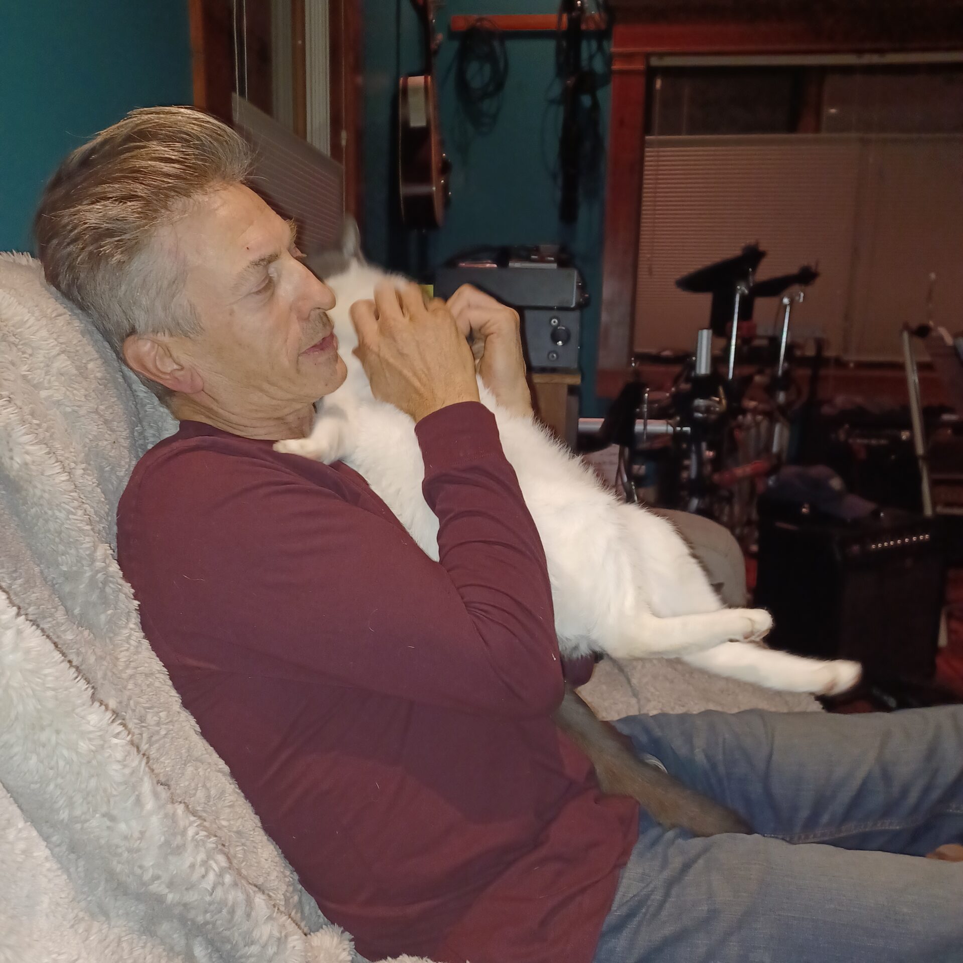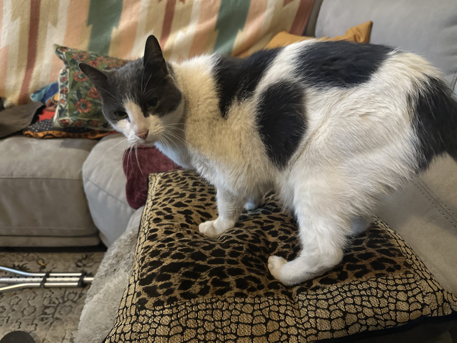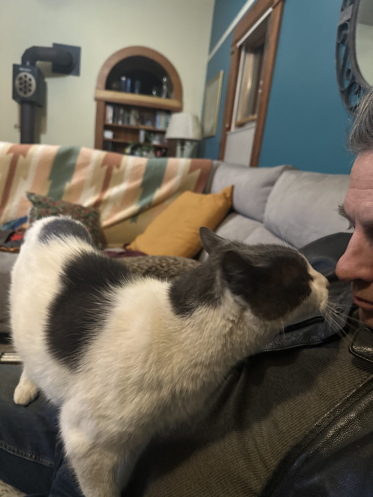 Kitty is 13, and a really friendly, snuggly, and talkative kitty. A real head-butter! He is healthy and has all his shots. Nice fur. Never bites. Comfortable outside and inside. $20 rehoming fee. Please call.